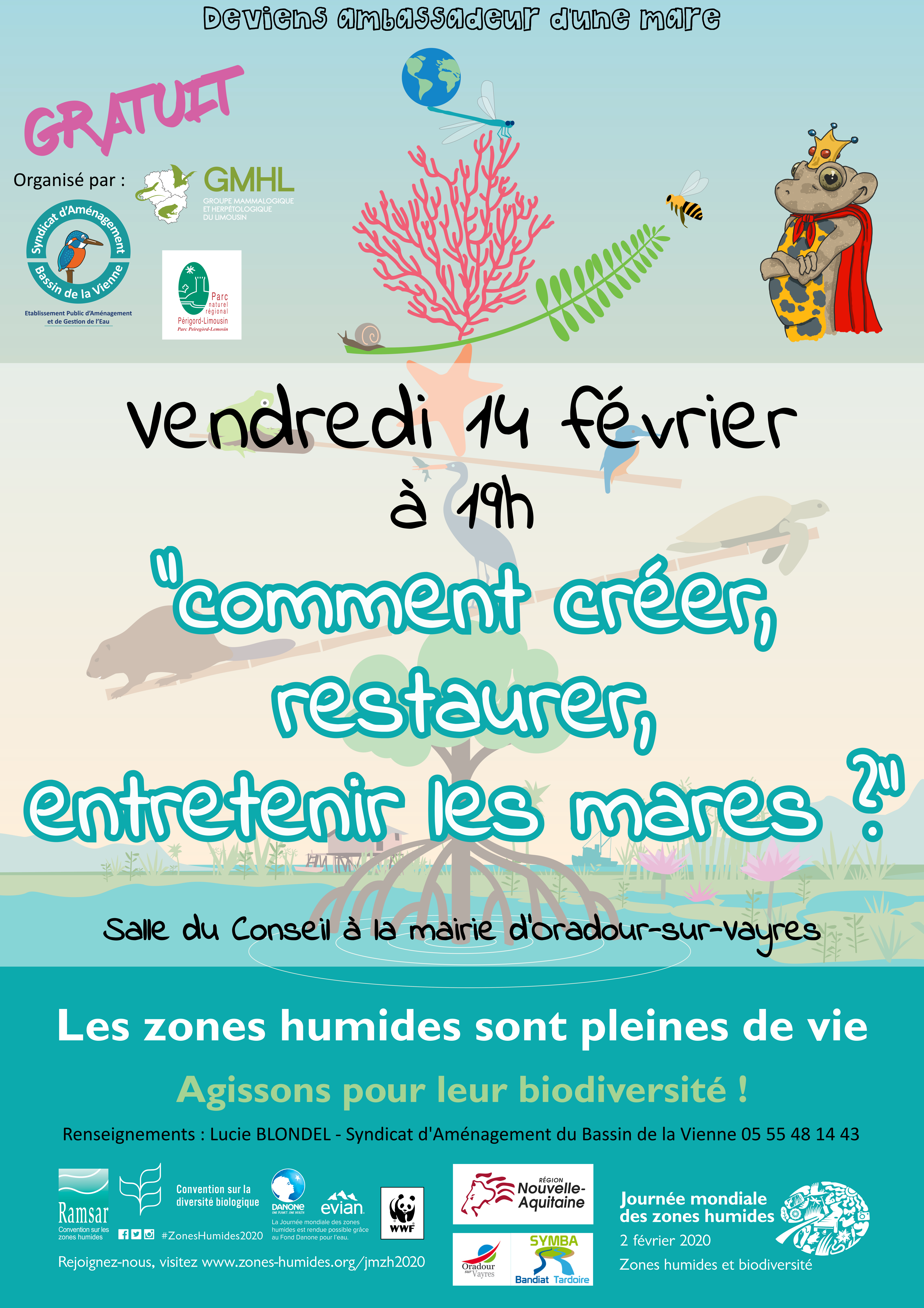 Dans le cadre du projet « Deviens ambassadeur d’une mare » lancé par la commune d’Oradour sur Vayres, en collaboration avec le Syndicat d’Aménagement du Bassin de la Vienne et le SYMBA Bandiat-Tardoire, nous organisons une soirée d’information et d’échanges.
