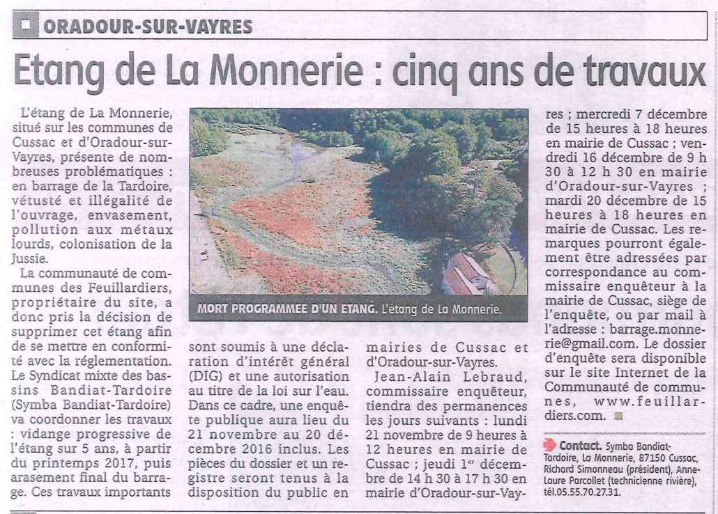 Article du Populaire du Centre paru le 17/11/2016
