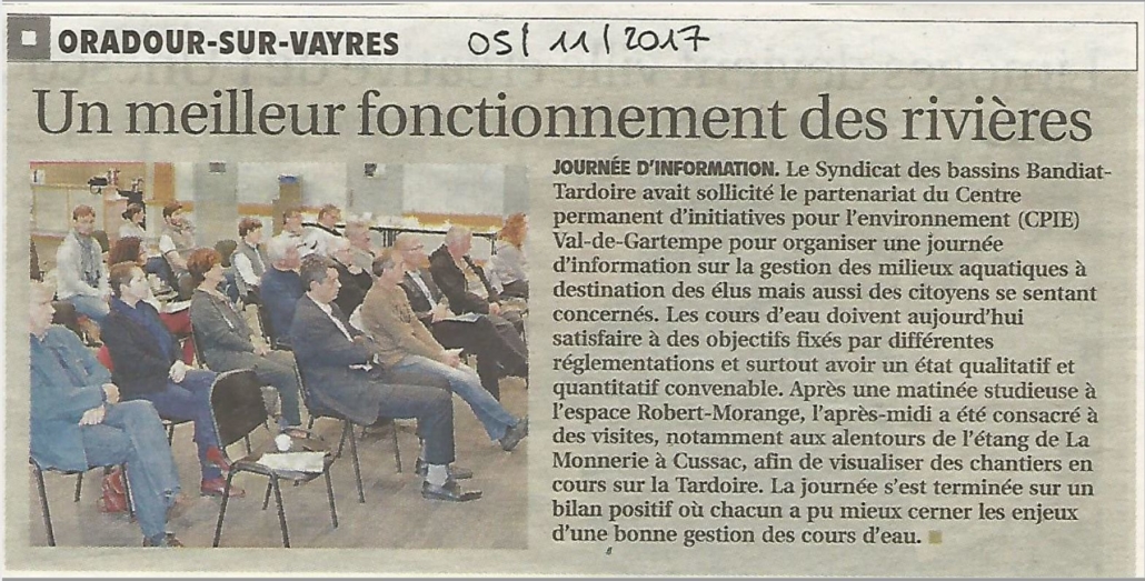 Nous exerçons nos compétences sur les bassins versants de la Tardoire, du Bandiat et du Trieux en Haute-Vienne...