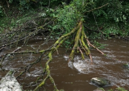 Cette phase a concerné 3 km de berges et a été réalisée par l’entreprise « Les Chevaux de bois » (La Coquille) avec l’usage d’un tracteur équipé d’un treuil forestier. Pour le secteur de la Doue, le chantier a été réalisé manuellement avec l’aide d’un treuil portatif.