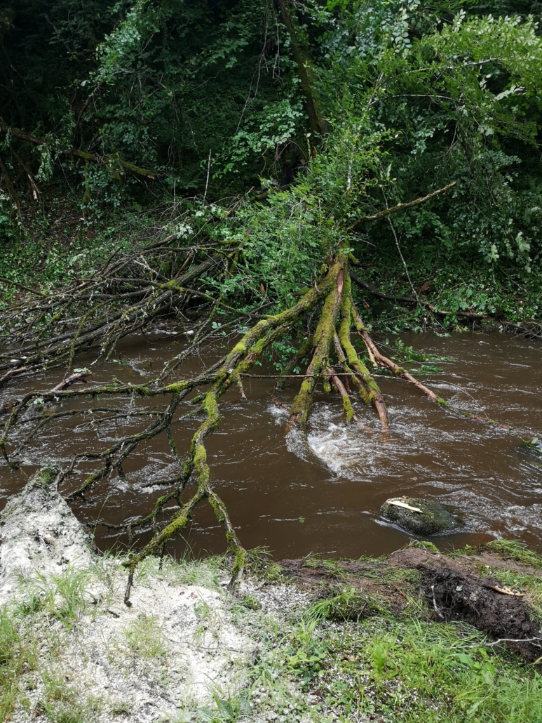 La semaine dernière (fin juin – début juillet) des travaux de restauration de ripisylve (végétation bordant le cours d’eau) et d’enlèvement d’embâcles (forte accumulation de matériaux) ont été engagés par le SYMBA Bandiat Tardoire sur le Bandiat et la Doue.